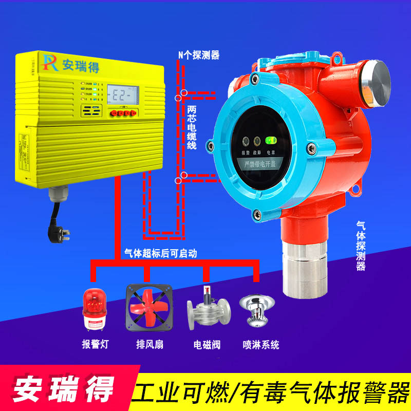 乙酸乙酯氣體報(bào)警器可以有效的檢測(cè)出可燃有毒性氣體的濃度,預(yù)防氣體泄漏后可燃有毒性氣體濃度超標(biāo)。乙酸乙酯氣體報(bào)警器是由氣體報(bào)警控制器和氣體探測(cè)器兩部分組成,控制器可放置于值班室內(nèi),主要對(duì)各監(jiān)測(cè)點(diǎn)進(jìn)行控制,可燃有毒性氣體探測(cè)器安裝于氣體zui易泄漏的地點(diǎn),氣體探測(cè)器的核心部件為內(nèi)置的氣體傳感器,可燃?xì)怏w傳感器檢測(cè)空氣中可燃?xì)怏w的濃度。氣體探測(cè)器將傳感器檢測(cè)到的可燃?xì)怏w濃度轉(zhuǎn)換成電信號(hào),通過線纜傳輸?shù)娇刂破?,可燃有毒性氣體濃度越高,電信號(hào)越強(qiáng),當(dāng)氣體濃度達(dá)到或超過氣體報(bào)警控制器設(shè)置的報(bào)警點(diǎn)時(shí),氣體報(bào)警控制器發(fā)出報(bào)警信號(hào),并可啟動(dòng)電磁閥、排氣扇等外聯(lián)設(shè)備,自動(dòng)排除隱患。